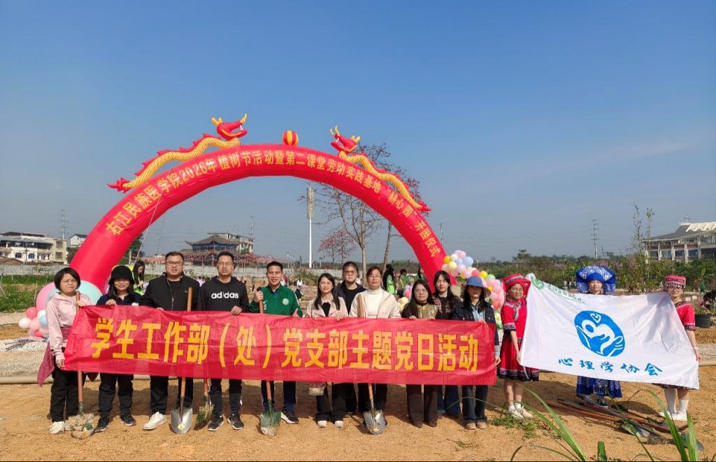 为深入践行“绿水青山就是金山银山”的绿色发展理念,积极响应国家生态文明建设号召,2026年3月12日,正值第48个中国植树节,学生工作部(处)党支部在百东校区第二课堂劳动实践基地“耕心园”开展了以“共植幸福树,快乐右医人”为主题的党日活动。学生工作部(处)党支部全体党员干部、学校医韵主持社、心理学协会及宿管会同学共同参与。